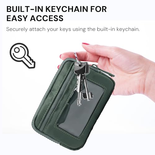 - Versatile Keychain Wallet for Women: This green keychain wallet doubles as a wallet, coin purse, or wristlet. Compact and lightweight, it features a front zipper pocket, card slots, a coin pouch, lipstick holder, and key ring—perfect for carrying cards, cash, coins, keys, and other small essentials. Ideal for commuting, travel, or everyday use