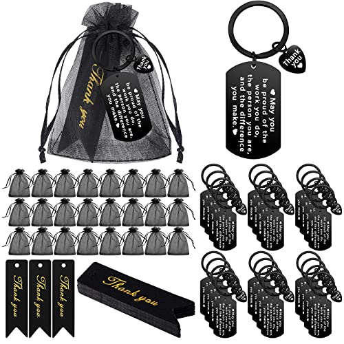 Yinkin 72 Pcs Employee Appreciation Gifts Thank You Coworker Keychain Gifts Organza Bags Thank You Cards Nurse Housekeeping(Black)