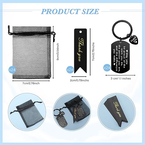 • Sufficient Quantity: the package comes with 24 pieces of inspirational keychains, 24 pieces of black organza bags and 24 pieces of thank you cards, which are enough for you to send to employees in batches, which can not only meet your daily use and replacement needs, but also enable you to share them with your employees and colleagues