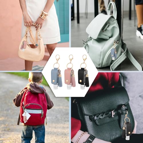 - Package Included: You will receive three Hand Sanitizer Holder Keychains, one blue, one pink and one black. They are a cute accessory for bags and keys.