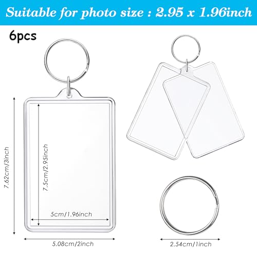 ZHLISHQINJJ 6 Pcs Photo Keychain (2 x 3inch) Transparent Picture Keychain, Acrylic Photo Insert Keychain Blank Photo Insert Keyring DIY Personalize Favor Graduation Gift