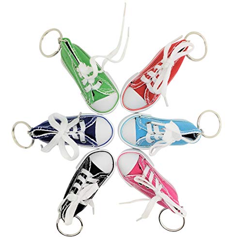 • Look at these Cute Converse Style Colorful Sneakers complete with White Laces and a Classic-Looking rubber sole! These unique 3” key chains come in the form of miniaturized canvas sneakers in an eye-catching variety of color. They come in 6 colors to chose from: Pink, Light Blue, Green, Red, Blue, Black with an option to buy them individually or in bulk!